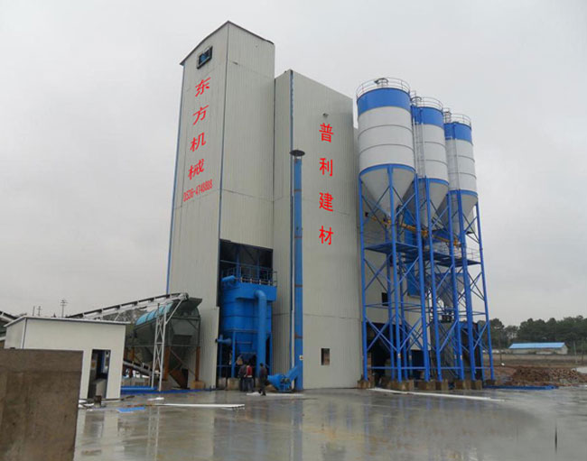 主要由提升輸送系統(tǒng)、計量配料系統(tǒng)、混合系統(tǒng)、儲料系統(tǒng)、包裝系統(tǒng)、除塵系統(tǒng)、控制系統(tǒng)、鋼架平臺等組成。